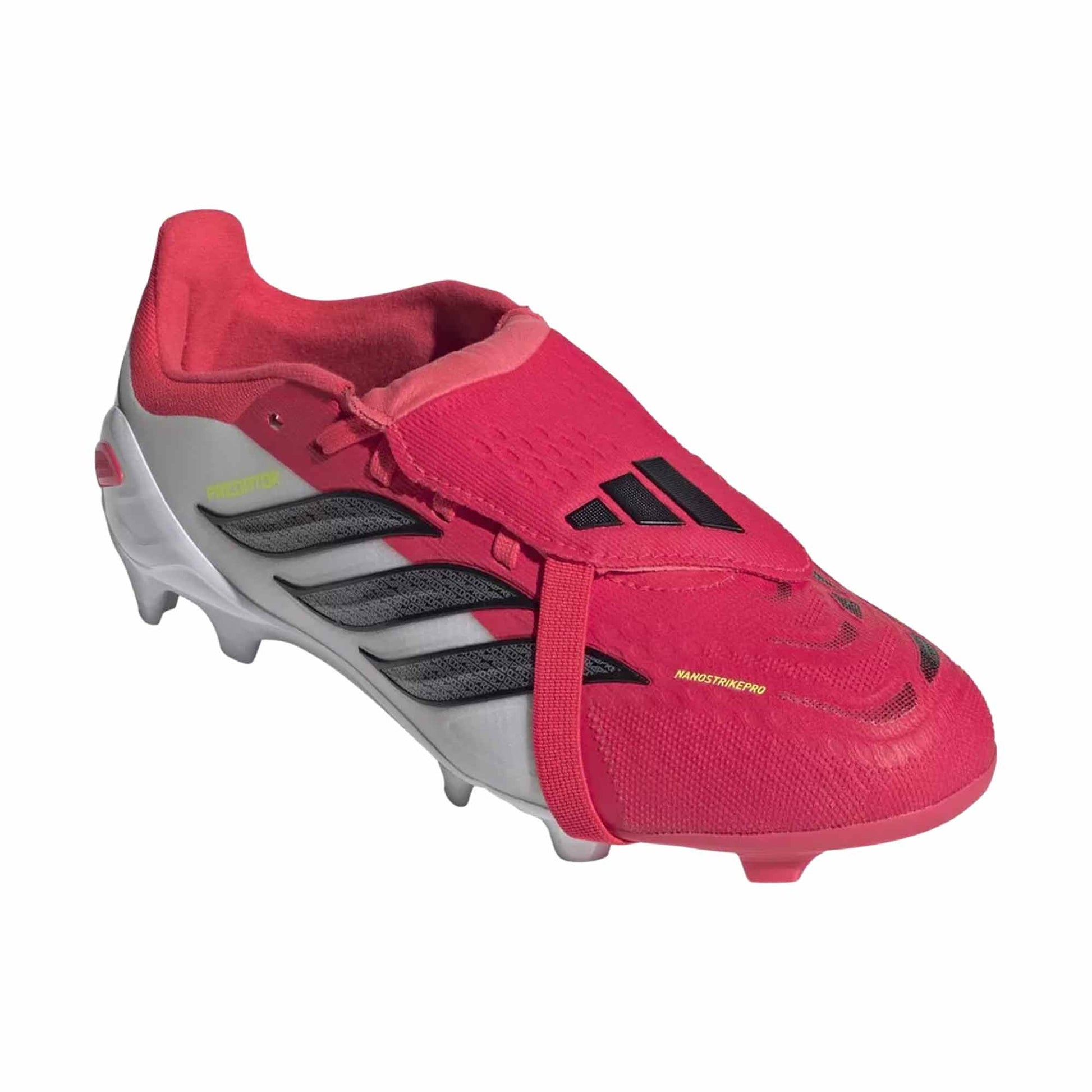 Guarda i giovani atleti scendere in campo con sicurezza grazie alle scarpe da calcio Predator Elite con linguetta ripiegabile, specifiche per i terreni naturali compatti. Pensate per il potenziamento, queste scarpe integrano tecnologie innovative progettate per aiutarli a prendere il controllo nelle azioni decisive davanti alla porta.